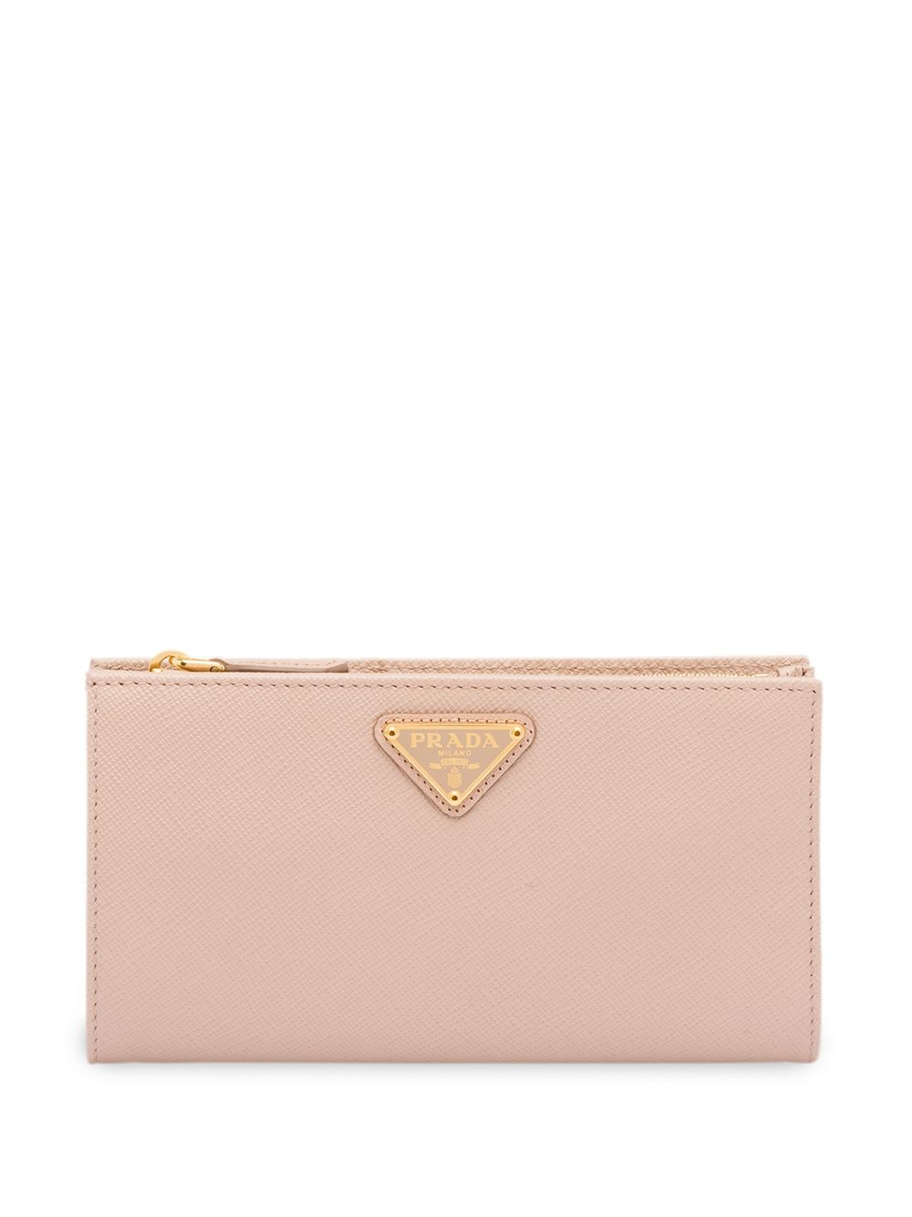 logo plaque wallet Luxury Italian heritage and expert artisanal craftsmanship lie at the heart of Milanese fashion house Prada's coveted design aesthetic. This compact textured Saffiano leather wallet features a top zip fastening, gold-tone hardware, multiple interior card slots and a gold-tone logo plaque on the front. Composition Outer: Calf Leather 100% Lining: Nylon 100% SIZE & FIT Measurement LENGTH 6.29 in(16 cm) WIDTH 3.74 in(9.5 cm)
