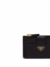 logo-plaque zip-fastening purse Featuring Prada's triangle logo plaque at the front of this zip-fastening purse, it references the brand's heritage in a contemporary way. Here, the emblem first used in 1919 is now surrounded by a geometric shape. In gold-tone hardware, it punctuates the tonal design and adds a sleek, timeless edge. Composition Outer: Leather 100% Lining: Leather 100% SIZE & FIT Measurement HEIGHT 2.95 in(7.5 cm) WIDTH 4.72 in(12 cm)