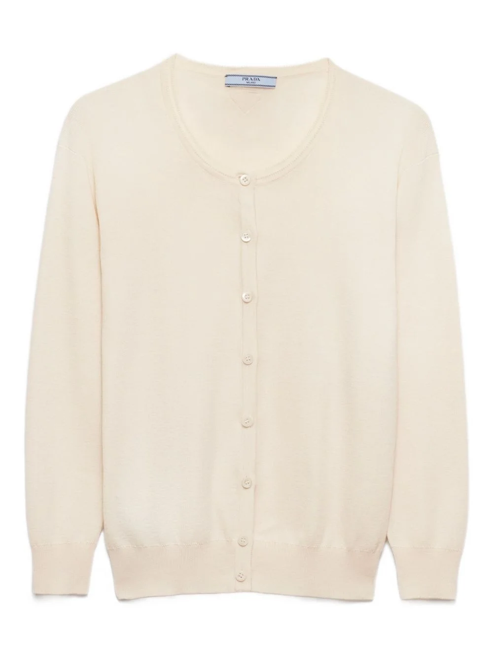 long-sleeves button cardigan Highlights - Off-white - Ribbed knit - Front button closure Composition Silk 100%, Cotton 100% Washing instructions Read Manufacturer Guidelines
