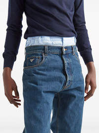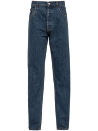 low-rise straight-leg jeans Highlights - Indigo blue - Cotton - Low-rise - Logo patch to the rear - Enamel triangle logo - Belt loops - Front button and zip fastening - Classic five pockets - Straight leg Composition Cotton 100% Washing instructions Read Manufacturer Guidelines