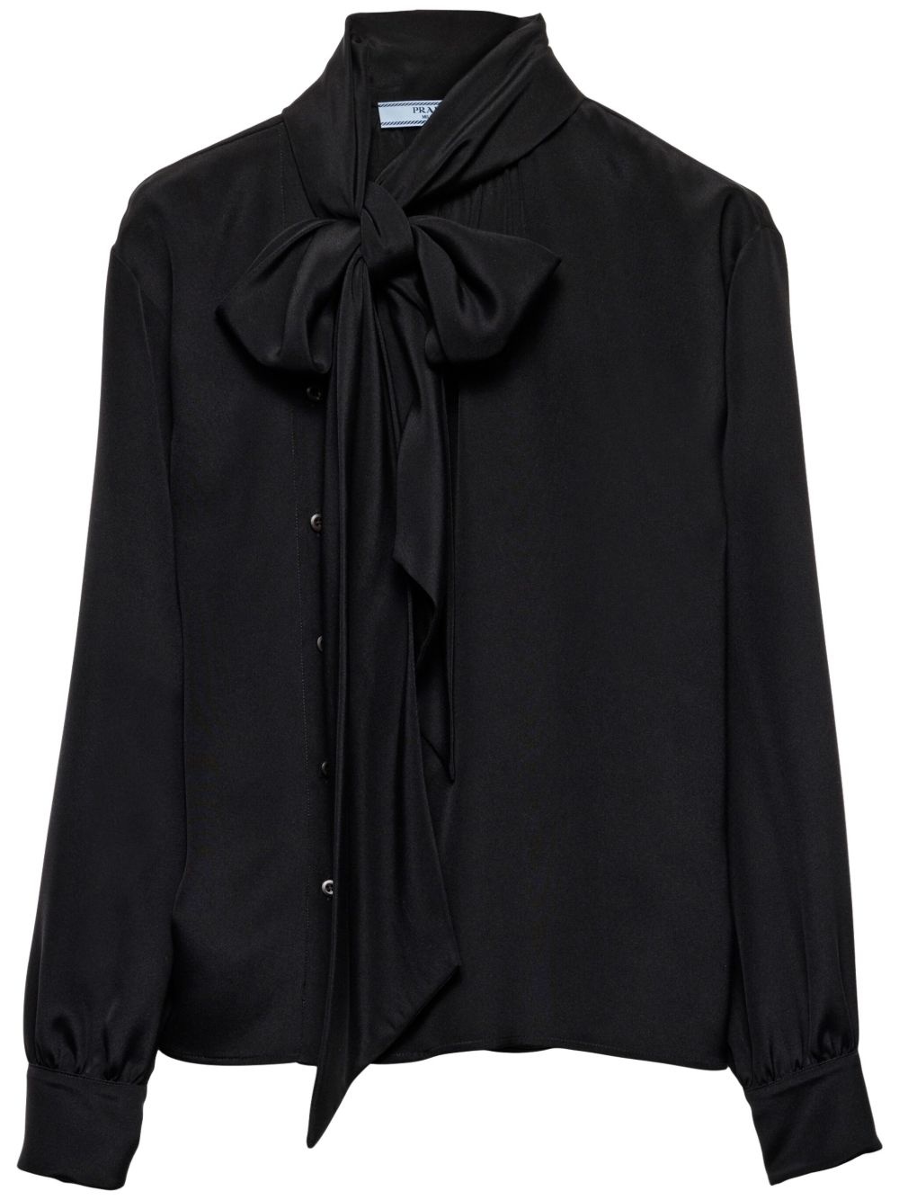 Marocain shirt Highlights - Black - Front button fastening - Buttoned-cuff sleeves - Attached scarf - Straight hem Composition Silk 100%