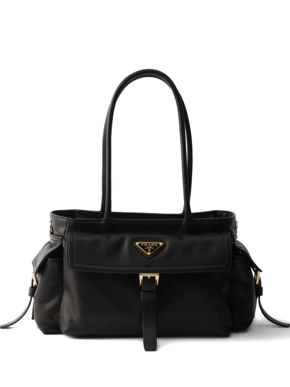 medium Explore leather tote bag Highlights - Black - Leather handles - Front pocket - Flap closure - Buckle detail - Gold-tone hardware Composition Outer: Lambskin 100% SIZE & FIT Measurement WIDTH 12.2 in(31 cm) HEIGHT 6.69 in(17 cm) DEPTH 4.33 in(11 cm)