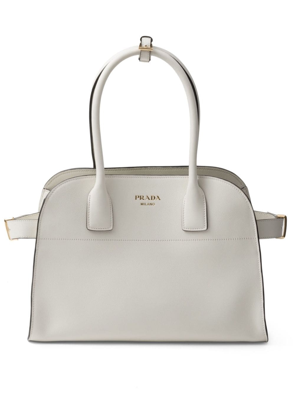 medium logo-stamp leather tote bag Highlights - White - Leather - Logo stamp to the front - Two rolled top handles - Main compartment - Internal zip-fastening pocket - Gold-tone hardware Composition Outer: Leather 100% Lining: Cotton 100% SIZE & FIT Measurement DEPTH 6.29 in(16 cm) HANDLE 6.29 in(16 cm) HEIGHT 9.25 in(23.5 cm) WIDTH 12.59 in(32 cm)