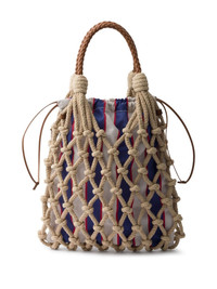 medium Noue tote bag Highlights - Ivory beige - Rope netting - Braided top handles - Drawstring closure - Striped lining - Single interior pocket - Decorative logo tag - Unstructured design Composition Outer: Fabric 100%, Leather 100%