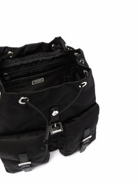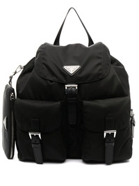 medium Re-Nylon backpack Prada's multi-pocket backpack has been designed from recycled nylon and leather. Part of the label's wider Re-Nylon project, this spacious accessory is detailed with the brand's signature triangle logo plaque to the front. Highlights - Black - Recycled nylon - Enamel triangle logo - Single circular top handle - Buckle fastening - Two front flap pockets - Removable pouch - Two padded adjustable shoulder straps Composition Outer: Leather 100%, Recycled Nylon 100% SIZE & FIT Model measurements Height 5 ft 9 in(1.74 m) Bust/Chest 32.28 in(82 cm) Hips 35.82 in(91 cm) Waist 24.01 in(61 cm) Measurement DEPTH 5.51 in(14 cm) HANDLE 3.93 in(10 cm) HEIGHT 11.81 in(30 cm) STRAP 14.96 in(38 cm) WIDTH 16.14 in(41 cm)
