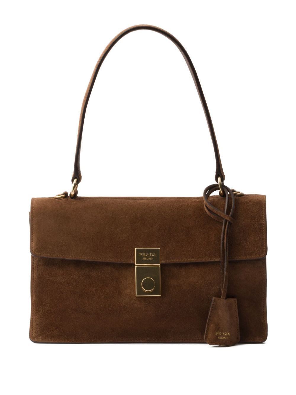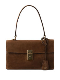 medium Soft Sound shoulder bag Highlights - Brown - Push-lock fastening - Single flat top handle - Adjustable detachable shoulder strap - Internal zip-fastening pocket Composition Suede 100% SIZE & FIT Measurement DEPTH 3.93 in(10 cm) HEIGHT 6.29 in(16 cm) WIDTH 11.02 in(28 cm)