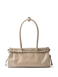 medium Bonnie tote bag Imagined in a beige hue, this bag from Prada is crafted from leather, whilst the iconic triangle logo is adorned at the front, for a subtle yet recognisable finish. Highlights - Beige - Leather - Nappa leather - Smoothing finish - Enamel triangle logo - Adjustable detachable shoulder strap - Two long top handles - Top zip fastening - Main compartment Composition Outer: Nappa Leather 100%, Leather 100% Lining: Nylon 100% SIZE & FIT Measurement DEPTH 4.72 in(12 cm) HEIGHT 6.1 in(15.5 cm) STRAP 49.21 in(125 cm) WIDTH 12.59 in(32 cm)