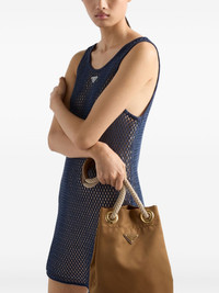 mesh mini dress Highlights - Navy blue - Open knit - Scoop neck - Sleeveless - Enamel triangle logo Composition Cotton 100% Washing instructions Read Manufacturer Guidelines