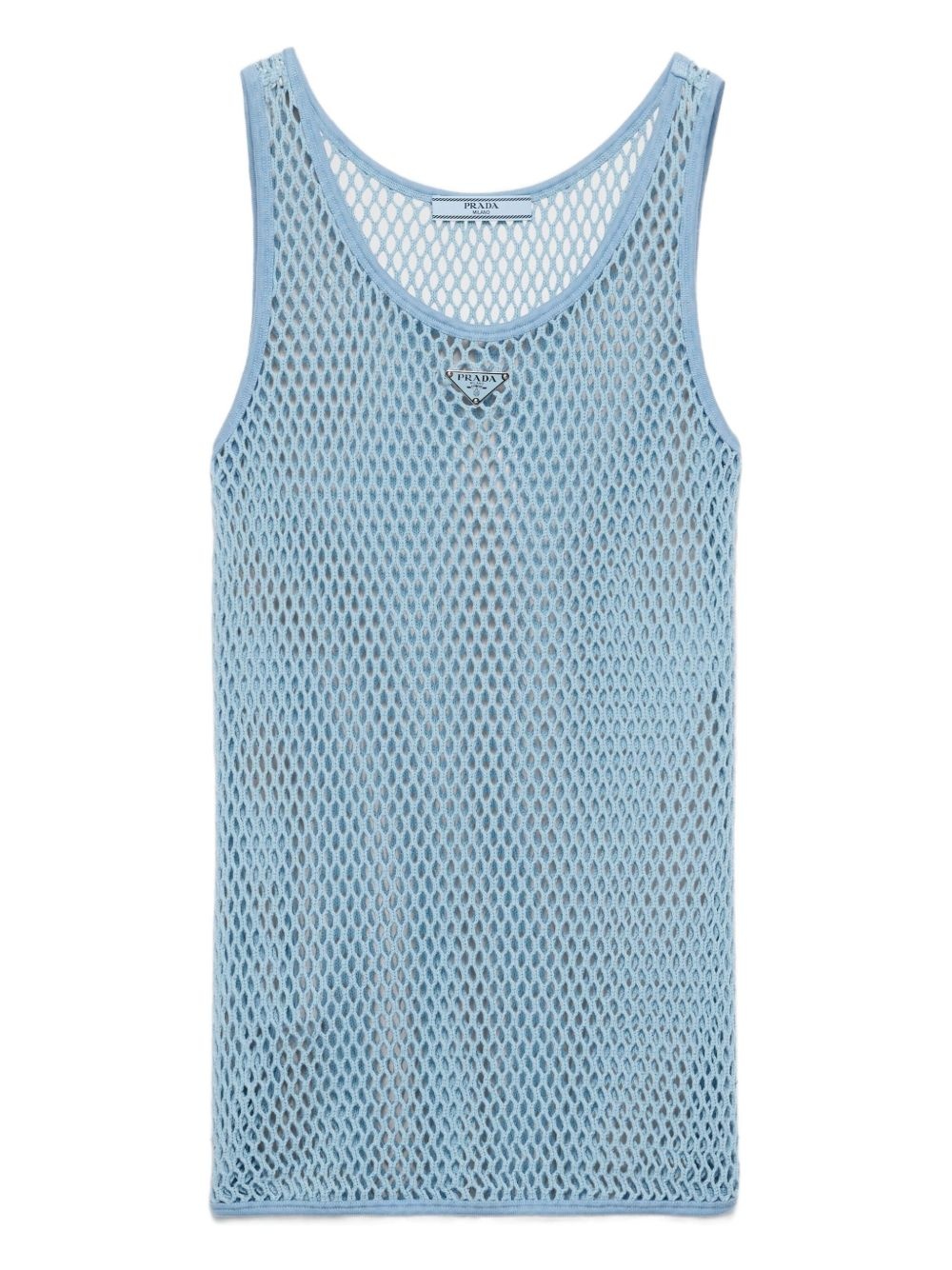 mesh tank top Highlights - Light blue - Fishnet design - Scoop neckline - Sleeveless - Relaxed fit - Subtle logo detail Composition Cotton 100% SIZE & FIT FittingInformation Designed for a slim fit that sits just away from the body offering a close yet comfortable fit Made with a lightweight knit, this piece offers some stretch