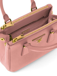 Galleria mini bag Highlights - Pink - Leather - Enamel triangle logo - Two rolled top handles - Adjustable handle wrap - Adjustable detachable shoulder strap - Open top - Two zip-fastening compartments - Main compartment - Internal zip-fastening pocket Composition Outer: Calf Leather 100% SIZE & FIT Measurement DEPTH 3.54 in(9 cm) HEIGHT 5.51 in(14 cm) STRAP 47.24 in(120 cm) WIDTH 7.87 in(20 cm)