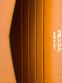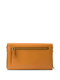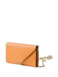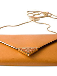 mini Saffiano leather clutch bag Highlights - Burnt orange - Foldover top with magnetic fastening - Detachable chain-link shoulder strap - Rear zip-fastening pocket - Internal card slots Composition Outer: CALFSKIN 100% SIZE & FIT Measurement HEIGHT 4.52 in(11.5 cm) WIDTH 7.87 in(20 cm)