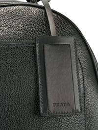 minimal style backpack Black calfskin minimal style backpack from Prada featuring internal zipped pockets, a front zip pocket, a round top handle, a hanging leather tag and an embossed logo. Composition Calf Leather 100% SIZE & FIT Model measurements Height 6 ft 2 in(1.89 m) Bust/Chest 36.22 in(92 cm) Hips 35.82 in(91 cm) Waist 28.74 in(73 cm) Measurement WIDTH 11.81 in(30 cm) HEIGHT 12.2 in(31 cm) HANDLE 2.75 in(7 cm) DEPTH 5.11 in(13 cm) STRAP 22.44 in(57 cm)
