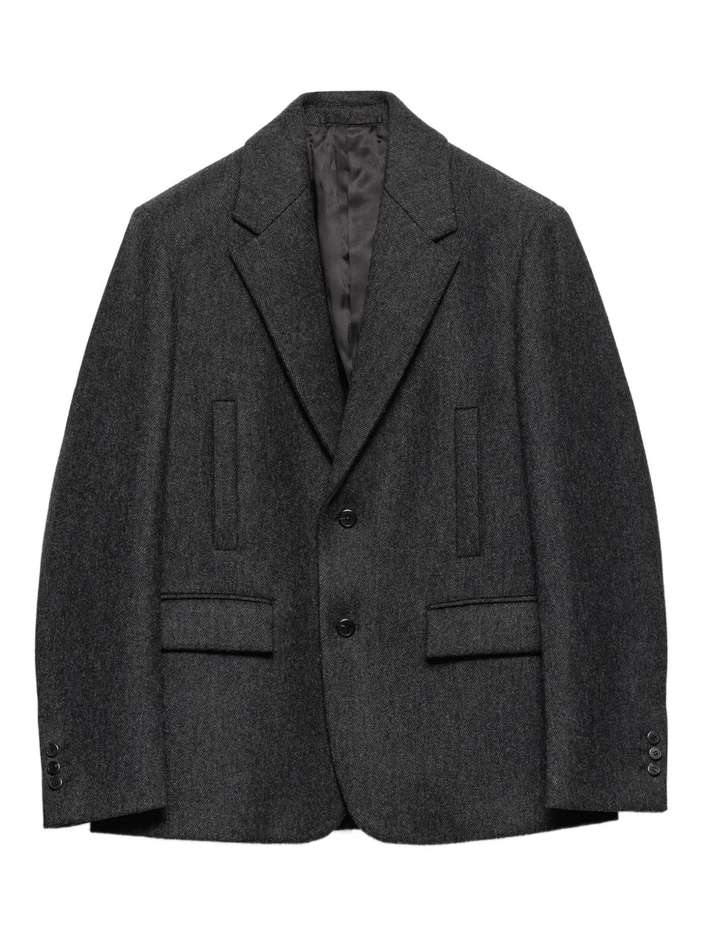notch-lapel wool jacket Highlights - Grey - Wool - Notch lapel - Two-button closure - Flap pockets - Signature triangle logo Composition Wool 100% Washing instructions Read Manufacturer Guidelines