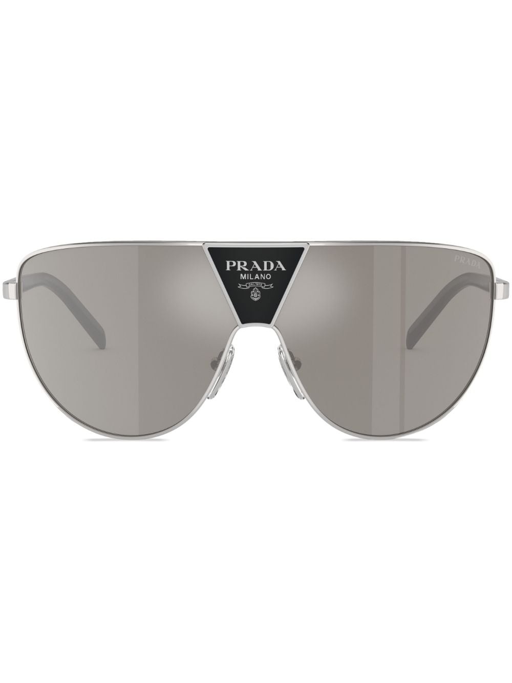 oversize-frame sunglasses silver-tone mirrored lenses oversize frame logo plaque nose pads straight arms curved tips These glasses come with a protective case. Composition Metal 100%