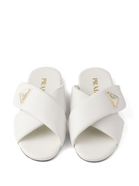 padded nappa-leather slides Highlights - White - Slip-on style - Enamel triangle logo - Branded footbed - Flat leather sole Composition Lining: Calf Leather 100% Sole: Calf Leather 100% Outer: Nappa Leather 100%