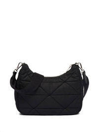 Padded Re-Nylon shoulder bag Prada finds new and inventive ways of incorporating its signature triangle symbol into its designs, showcased here on the quilted pattern of this bag. The practical shoulder design is crafted in the brand's signature Re-Nylon fabric, and finished with a detachable pouch. Highlights - Black - Recycled nylon - Padded design - Quilted - Silver-tone hardware - Enamel triangle logo - Top zip fastening - Adjustable detachable shoulder strap - Removable pouch - Top zip fastening - Main compartment Composition Outer: Recycled Nylon 100% SIZE & FIT Measurement DEPTH 2.75 in(7 cm) HEIGHT 7.87 in(20 cm) STRAP 33.46 in(85 cm) WIDTH 9.44 in(24 cm)
