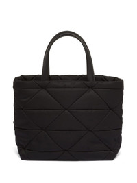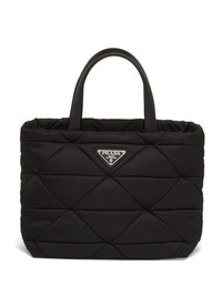 Re-Nylon padded tote bag The triangular quilting, a nod to Prada's iconic emblem logo, characterizes this Padded Re-Nylon tote bag. It's crafted from recycled polyamide and topped with the signature enameled metal triangle logo. Highlights - Black - Recycled polyamide - Padded design - Enamel triangle logo - Top zip fastening - Adjustable detachable shoulder strap - Two top handles - Main compartment - Internal zip-fastening pocket Composition Calf Leather 100%, Resin 100%, Recycled Polyamide 100% SIZE & FIT Measurement DEPTH 5.11 in(13 cm) HANDLE 4.33 in(11 cm) HEIGHT 7.87 in(20 cm) STRAP 23.62 in(60 cm) WIDTH 9.25 in(23.5 cm)