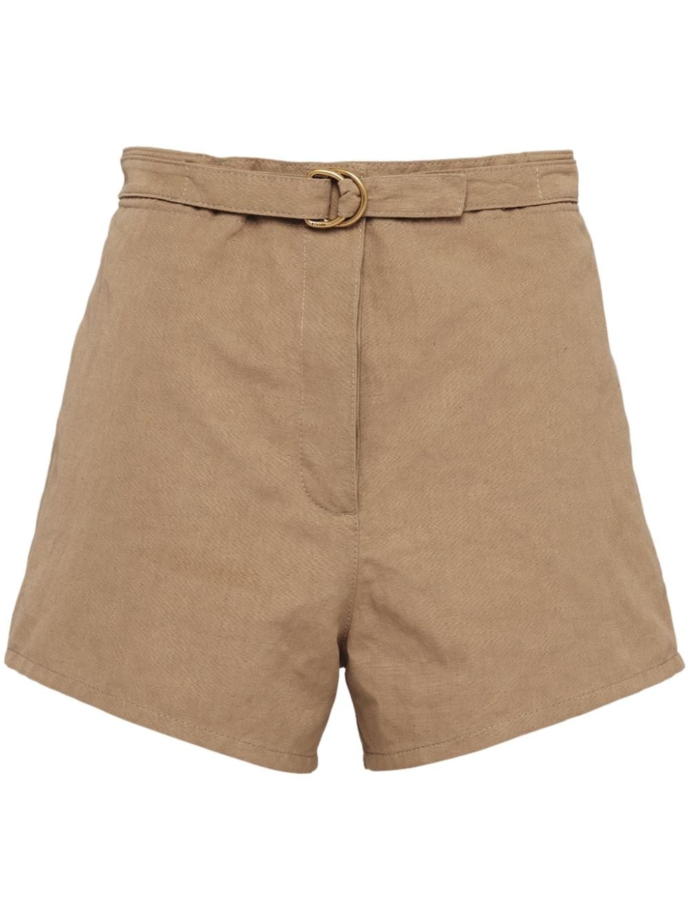 panama shorts Highlights - Caramel brown - Cotton-linen blend - Front buckle fastening - Two side slit pockets - Thigh-length Composition Trochus Shell 100%, Cotton 62%, Linen/Flax 38%