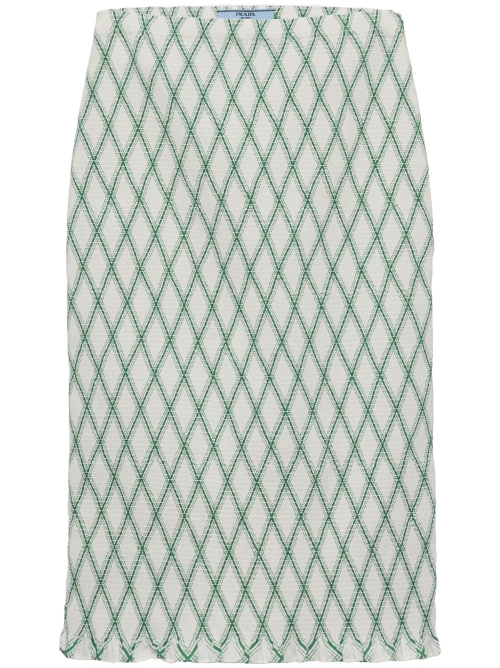 patterned cotton midi skirt Highlights - Green - Smocked panel - Ruffle hem - Triangle logo Composition Cotton 100%