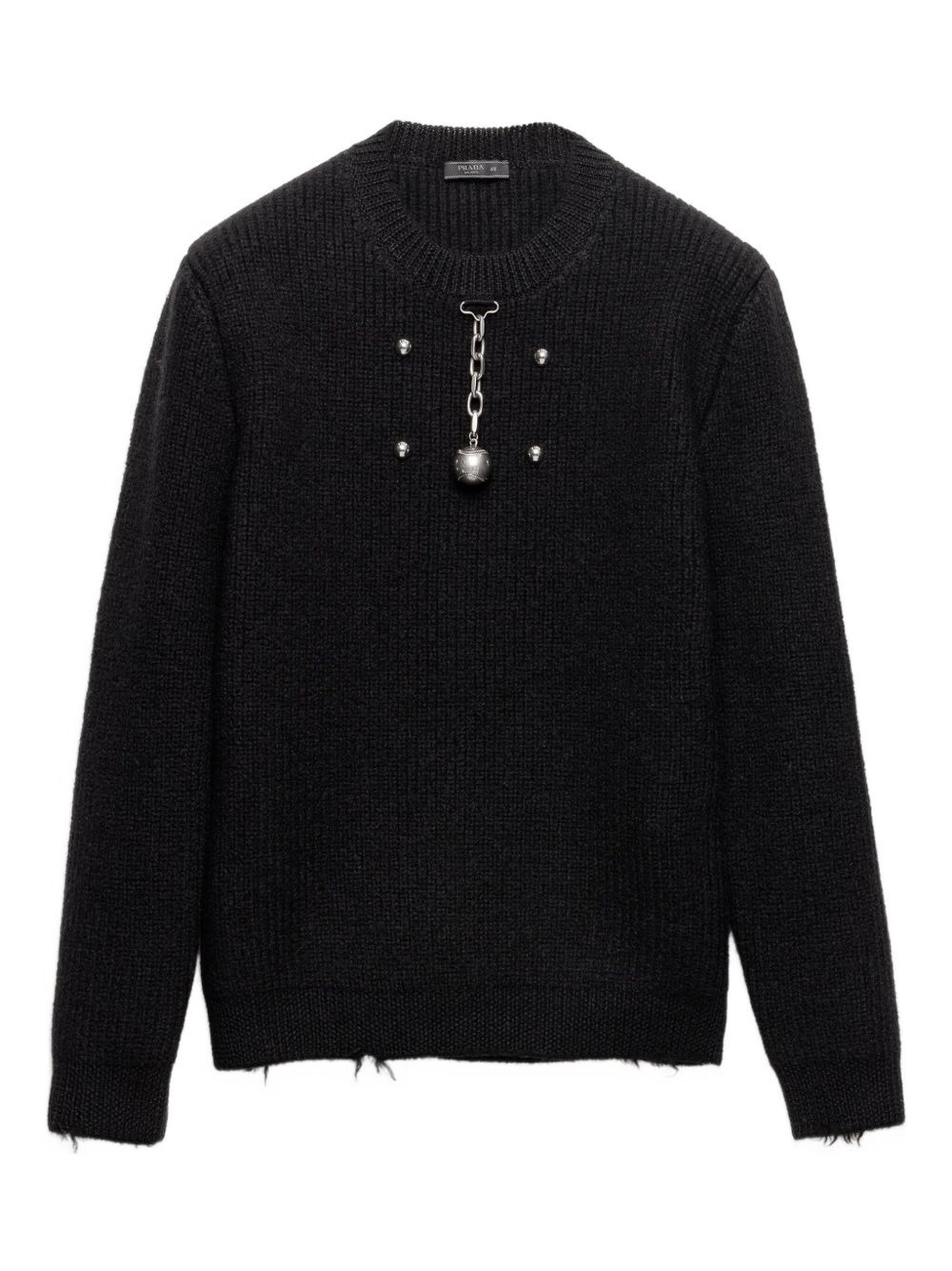 pendant wool crew-neck sweater Highlights - Black - Ribbed knit - Pendant detail - Straight hem Composition Fabric 100% Washing instructions Read Manufacturer Guidelines