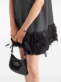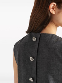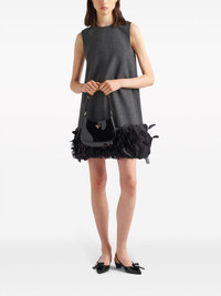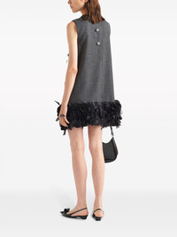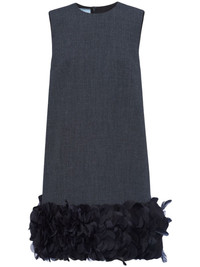 petal-trim wool minidress Prada's history with tailoring is mirrored in this mini dress. Crafted from wool in grey, it offers a structured silhouette detailed with crystal-embellished buttons and a petal and feather trim at the hem. Highlights - Medium grey - Wool - Feather-trim detailing - Contrasting trim - Crystal-embellished buttons - Crew neck - Side zip fastening - Rear button fastening - Sleeveless - Thigh-length - Straight hem - Full lining Composition Wool 100% Washing instructions Read Manufacturer Guidelines