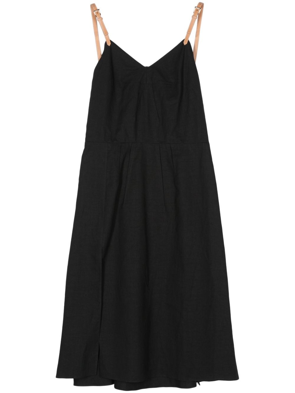 pleat-detail dress Highlights - Black - Cotton-linen blend - Pleat detailing - Two adjustable leather and chain-link shoulder straps - V-neck - Sleeveless - Open back - Unlined - Press-stud fastening Composition CALFSKIN 100%, Linen/Flax 66%, Cotton 34% SIZE & FIT Model measurements Height 5 ft 10 in(1.78 m) Bust/Chest 32.67 in(83 cm) Hips 35.43 in(90 cm) Waist 23.22 in(59 cm) FittingInformation Designed for a slim fit that sits just away from the body offering a close yet comfortable fit The adjustable shoulder straps allow for a preferred fit when worn Made from a midweight non-stretch fabric This piece fits true to size – take your usual size