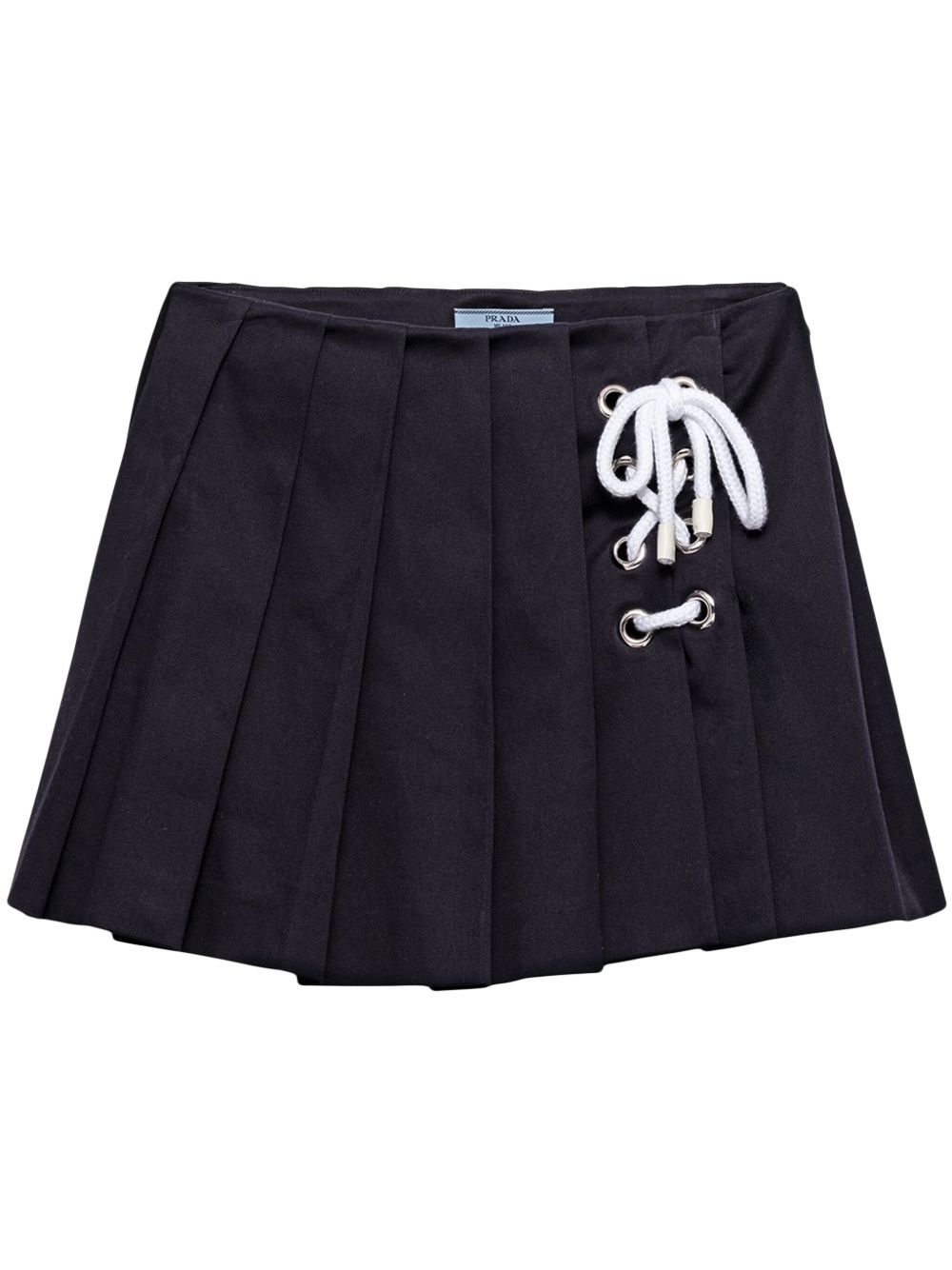 pleated drill mini skirt Highlights - Navy blue - Concealed side hook and zip fastening - Lace-up detailing - Straight hem Composition Cotton 98%, Elastane 2%