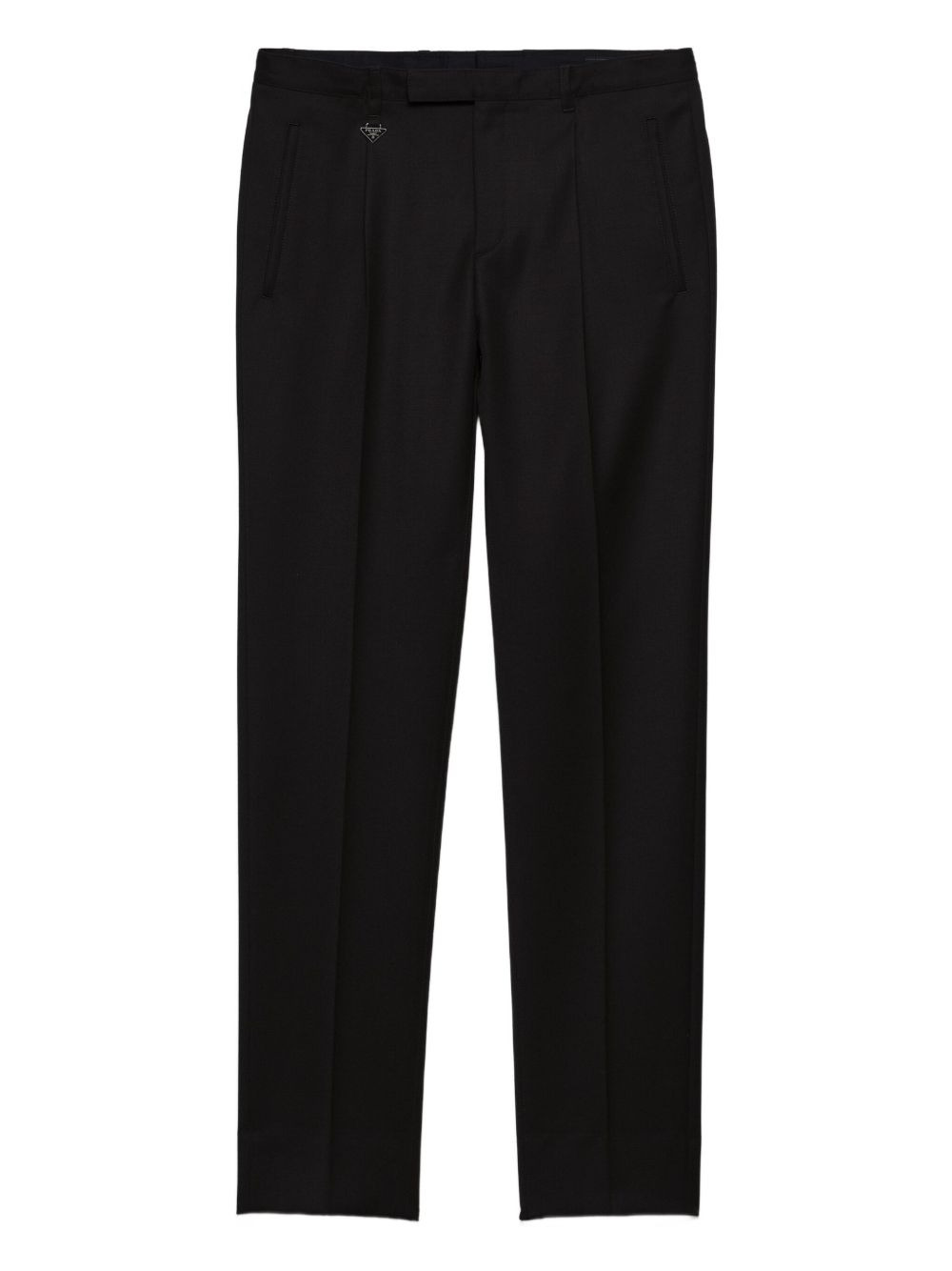 pleated-front wool trousers Highlights - Black - Wool - Pleated front - Concealed zip fly - Welt pockets - Enamel triangle logo Composition Wool 100% Washing instructions Read Manufacturer Guidelines
