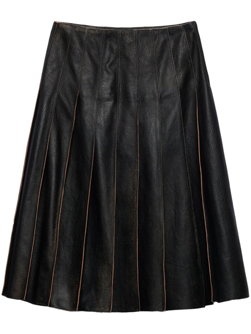 pleated leather midi skirt Highlights - Black - Leather - Grained texture - Box-pleat design - Concealed side zip fastening - High-waisted - A-line - Straight hem - Mid-length Composition Leather 100%