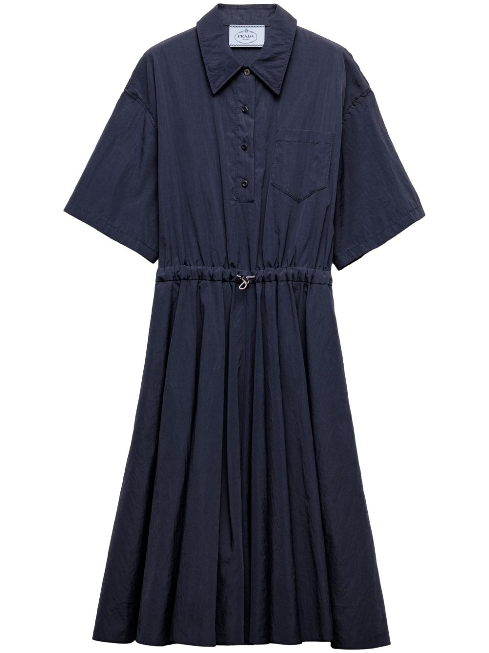 ponge short-sleeve midi dress Highlights - Navy blue - Front button placket - Drawstring waist - Two side inset pockets - Pointed flat collar Composition Fabric 100%