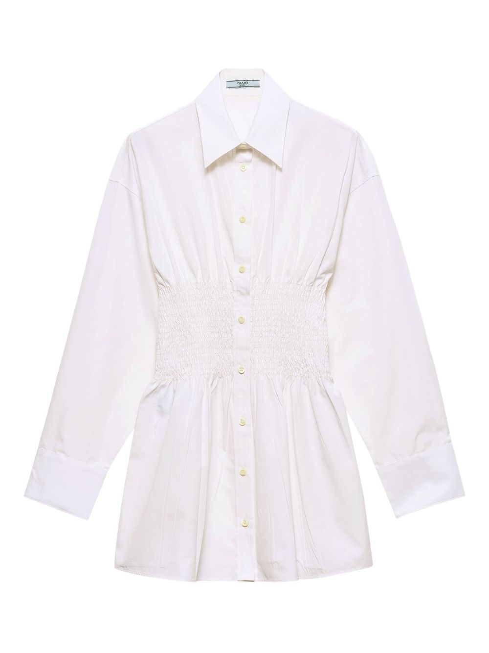 poplin shirt Highlights - White - Front button fastening - Front patch pocket - Smocked waist - Triangle logo Composition Cotton 100%