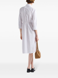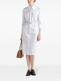 poplin shirt dress Highlights - White - Cotton - Poplin texture - Enamel triangle logo - Classic collar - Three-quarter length sleeves - Buttoned cuffs - Belted waist - Four front flap pockets - Front button fastening - Straight hem Composition Cotton 100%, Lamb Skin 100% Washing instructions Read Manufacturer Guidelines