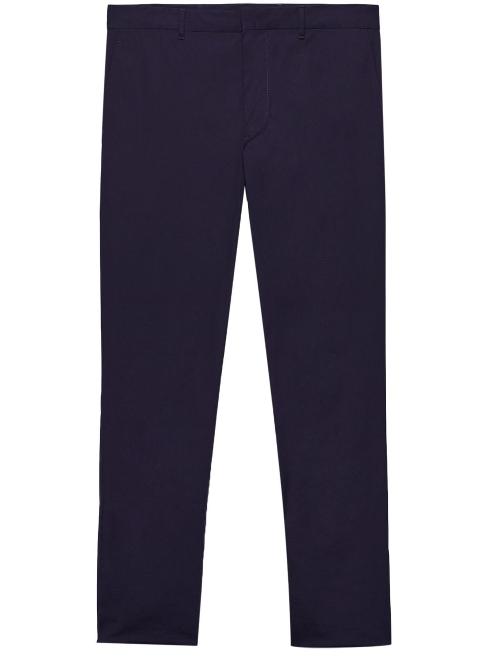 poplin stretch trousers Highlights - Blue - Concealed front button, hook and zip fastening - Two side slash pockets - Triangle logo Composition Cotton 78%, Polyamide 18%, Spandex/Elastane 4%