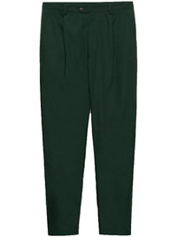 poplin trousers Highlights - Forest green - Poplin texture - Concealed fly and button fastening - Belt loops - Pleat detailing - Two side slash pockets - Logo print to the rear - Two rear welt pockets - Tapered leg Composition Polyester 65%, Cotton 35%