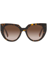 PR 14WS cat-eye sunglasses PR 14WS cat-eye sunglasses from PRADA EYEWEAR featuring brown, orange, acetate, tortoiseshell effect, brown tinted lenses, gradient effect, cat-eye frame, logo print at the arm, logo print to the front and sculpted arms. These glasses come with a protective case.. Composition Acetate 100% SIZE & FIT Measurement Arm Length 5.51 in(14 cm) Bridge Width 0.78 in(2 cm) Lens Diameter 2.04 in(5.2 cm) Total Width 5.51 in(14 cm)