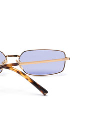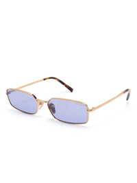 Prada-logo sunglasses Highlights - Gold-tone - Acetate/metal - Rectangle frame - Purple tinted lenses - Nose pads - Logo-engraved arm - Straight arms - Curved tips - These glasses come with a protective case. Composition Acetate 100%, Metal 100% SIZE & FIT Measurement Arm Length 5.31 in(13.5 cm) Bridge Width 0.62 in(1.6 cm) Lens Diameter 2.32 in(5.9 cm) Total Width 5.51 in(14 cm)