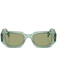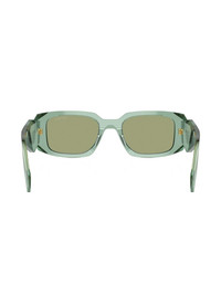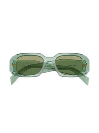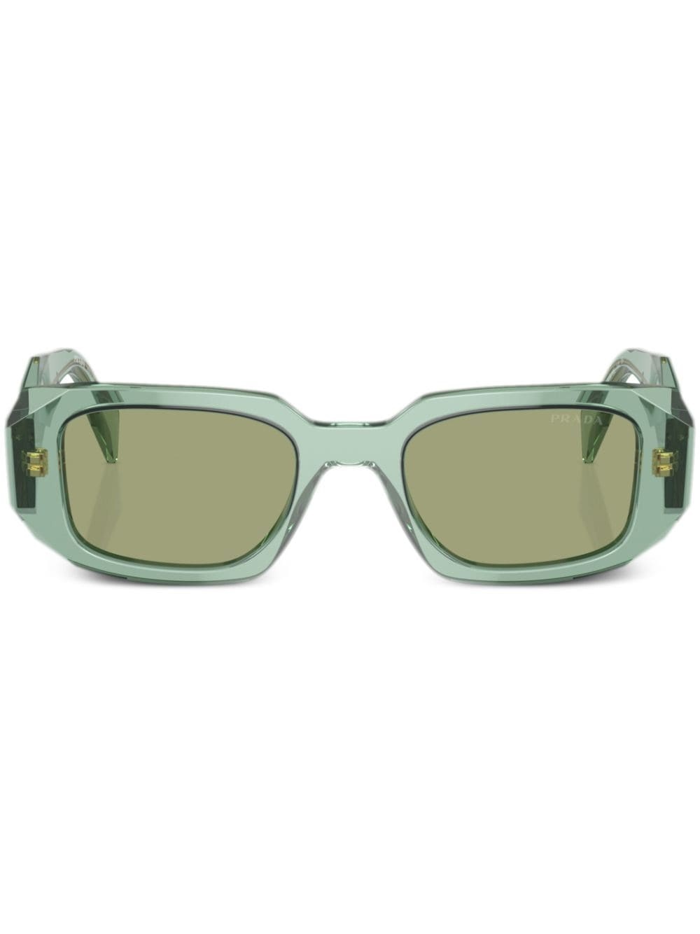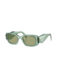 Prada PR 17WS rectangle frame sunglasses Highlights - Green - Rectangle frame - Green tinted lenses - Straight arms - Curved tips - Logo print at the lens - Enamel triangle logo - Gold-tone hardware - These glasses come with a protective case. Composition Acetate 100% SIZE & FIT Measurement Arm Length 5.7 in(14.5 cm) Bridge Width 0.78 in(2 cm) Lens Diameter 1.92 in(4.9 cm)
