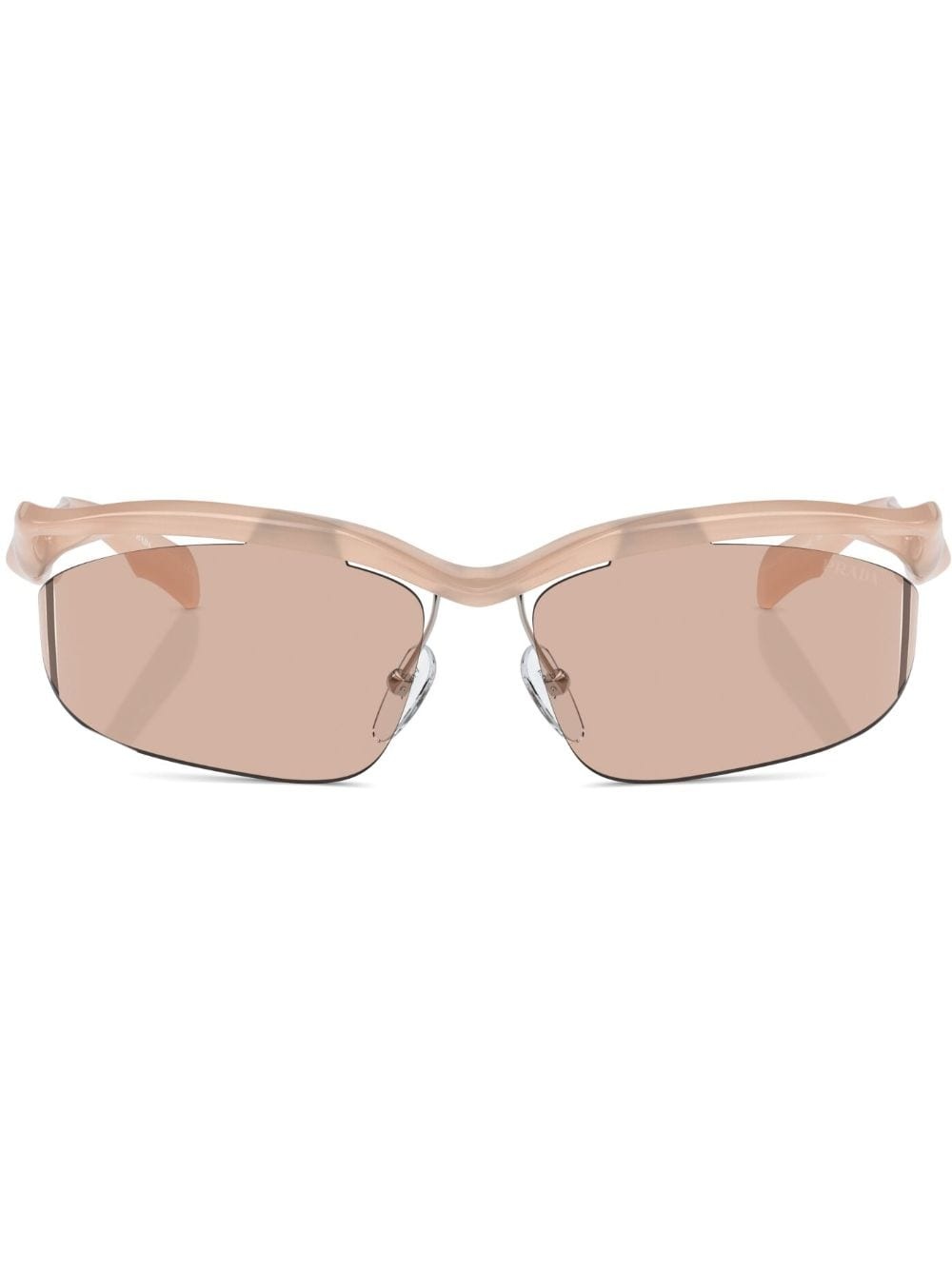 Prada PR A25S geometric frame sunglasses Highlights - Peach beige - Semi-rimless - Nose pads - Geometric frame - Tinted lenses - Logo print at the arm - Sculpted arms - These glasses come with a protective case. Composition Plastic 100%