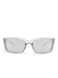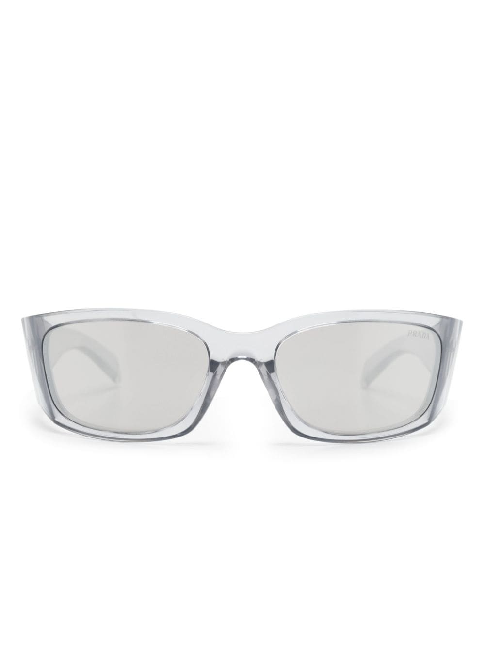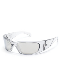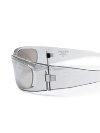 Prada Symbole sunglasses Highlights - Light grey - Acetate - Transparent design - Wraparound frame - Uv-protective mirrored lenses - Logo-engraved arm - Sculpted arms - Curved tips - These glasses come with a protective case. Composition Acetate 100% SIZE & FIT Measurement Arm Length 4.72 in(12 cm) Bridge Width 0.7 in(1.8 cm) Lens Diameter 2.36 in(6 cm) Total Width 5.51 in(14 cm)
