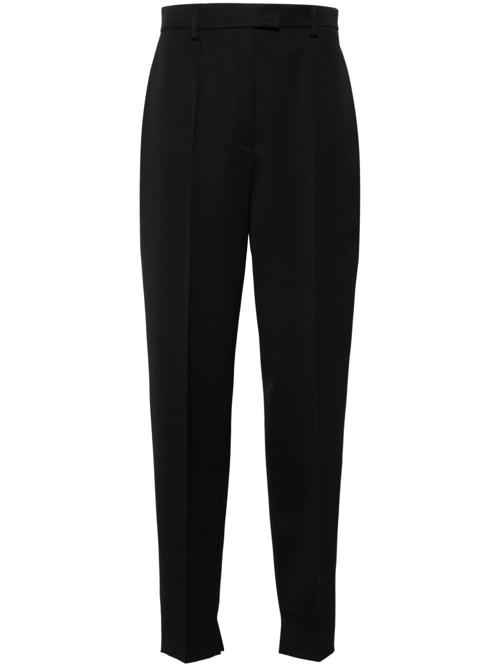 pressed-crease tapered-leg trousers Highlights - Black - Virgin wool - Twill weave - Belt loops at the waist - Pressed crease - Two rear welt pockets - Internal logo tag - Tapered leg - Short side slits at the ankles - Concealed front button, hook and zip fastening Composition Outer: Virgin Wool 100% Lining: Cupro 100% SIZE & FIT Model measurements Height 5 ft 9 in(1.76 m) Bust/Chest 31.88 in(81 cm) Hips 35.43 in(90 cm) Waist 22.44 in(57 cm) FittingInformation Designed for a tapered fit, these trousers allow for a close fit at the waist and a loose unrestricted fit over the leg with a closer fit towards the ankle Made from a midweight non-stretch fabric This piece fits true to size – take your usual size Washing instructions Dry Clean Only