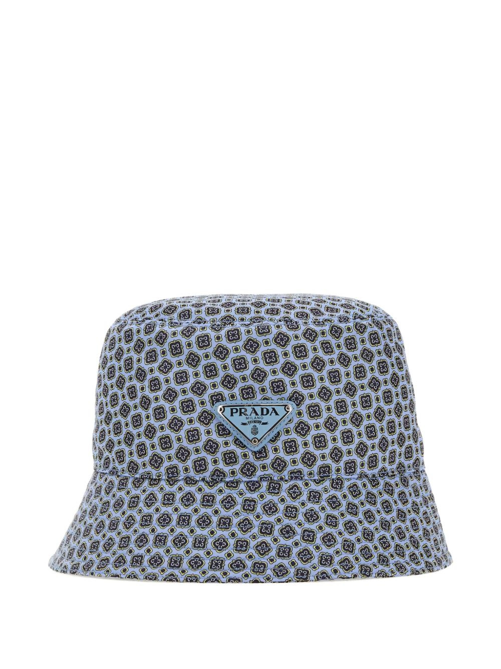 printed bucket hat Highlights - Light blue - Geometric pattern - Re-nylon fabric - Logo plaque - Flat crown - Wide brim Composition Lining: Cotton 100% Outer: Recycled Nylon 100%
