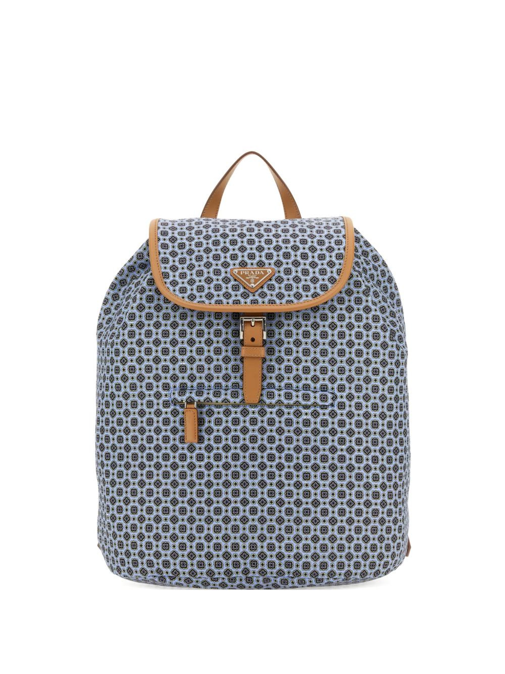 printed-pattern leather-trimmed backpack Highlights - Light blue - Geometric print - Leather trim - Buckle fastening - Adjustable straps Composition Recycled Nylon 100%