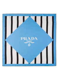 printed silk scarf Highlights - Sky blue/white/black - Silk - Twill weave - Vertical stripe print - Geometric print - Logo print to the front - Square shape - Solid border Composition Silk 100%