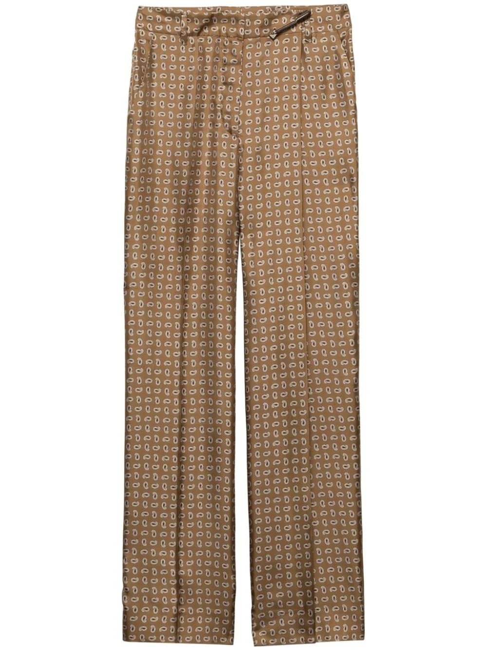 high-waist twill pants Highlights - Barley brown/multicolour - Silk - Twill weave - Paisley print - Brooch detail - Tailored cut - High-waisted - Concealed front button, hook and zip fastening - Belt loops - Two diagonal pockets to the sides - Two rear welt pockets - Pressed crease - Straight hem Composition Silk 100%, Brass 100% SIZE & FIT FittingInformation Designed with a wide-leg cut, these trousers allow for a close fit at the waist and offer a loose and roomy fit over the leg Made from a lightweight non-stretch fabric