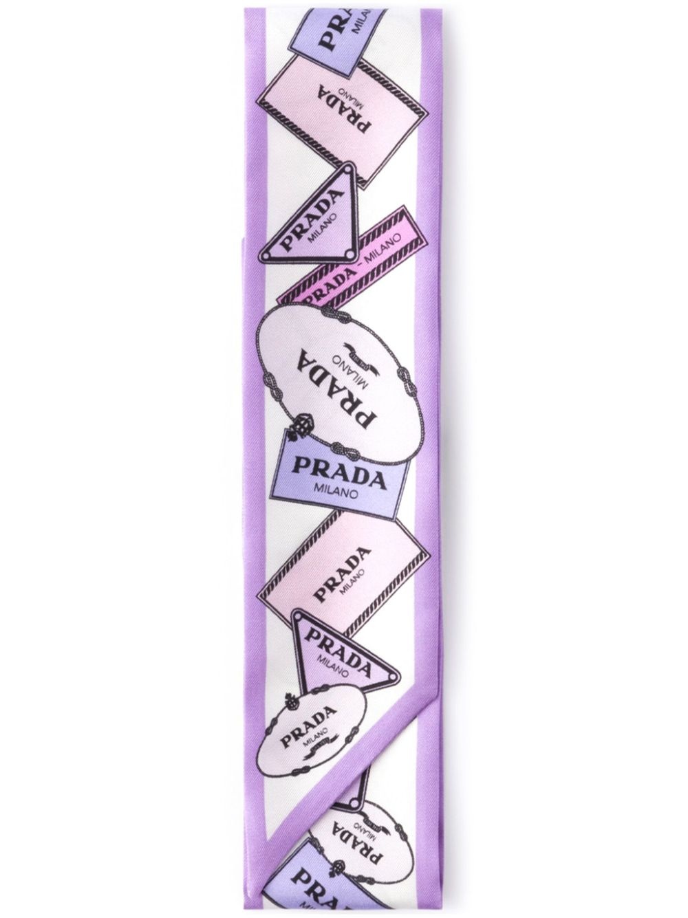 printed twill scarf Highlights - Lavender purple - Solid border - Pointed tip Composition Silk 100% SIZE & FIT Measurement LENGTH 33.46 in(85 cm) WIDTH 2.36 in(6 cm)