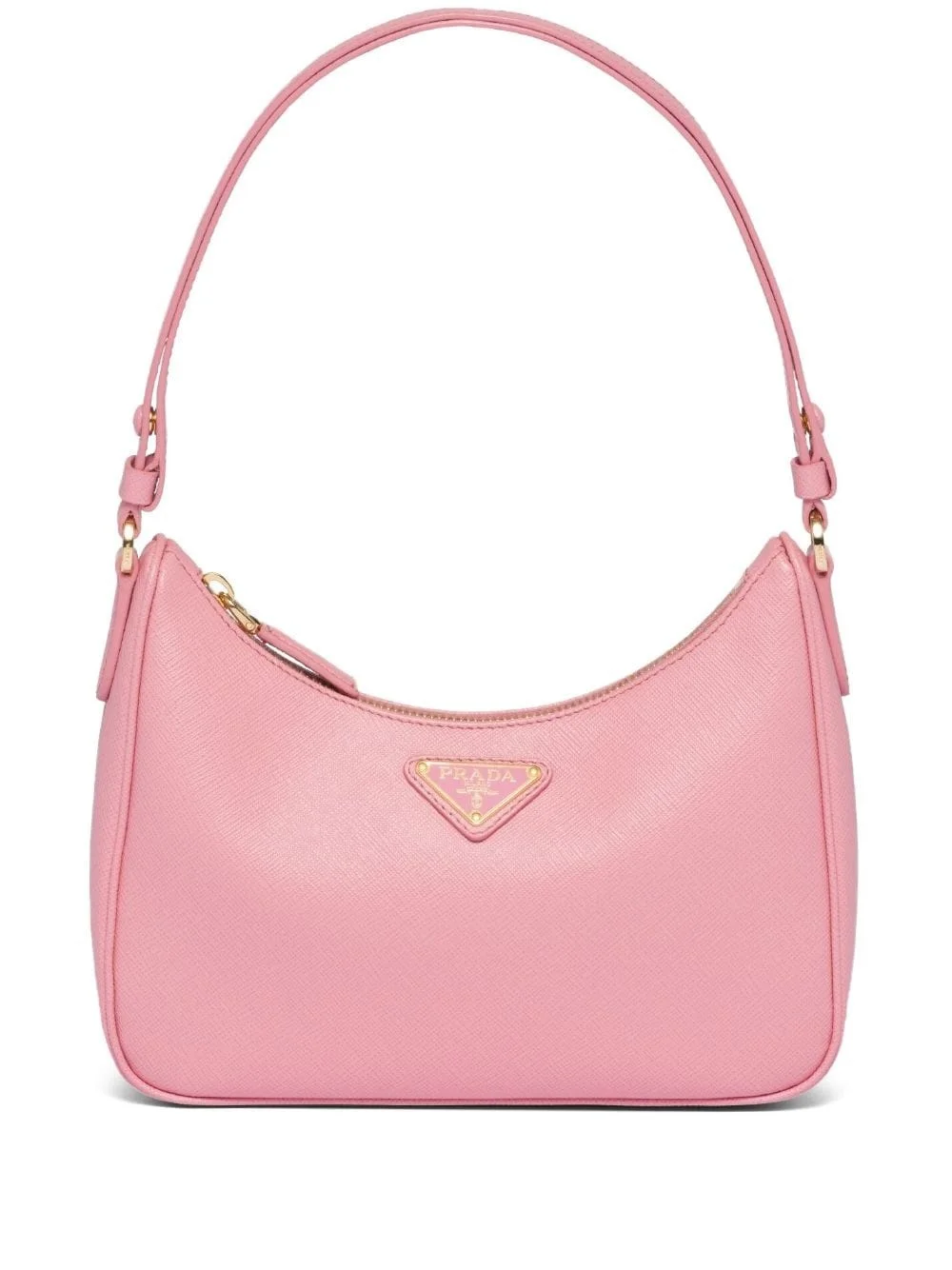 Re-Edition leather mini bag This 'Petal' pink Re-Edition mini bag is crafted from Prada's signature Saffiano leather with a crosshatch texture. Branded details – like the iconic triangle logo and keyring attachment – add recognisable final touches. Highlights - Pink - Leather - Fixed top handle - Top zip fastening - Logo plaque at front - Luggage tag detail - Silver-tone hardware - Main compartment Composition Outer: Leather 100% SIZE & FIT Measurement DEPTH 2.36 in(6 cm) HEIGHT 7.08 in(18 cm) WIDTH 8.66 in(22 cm)