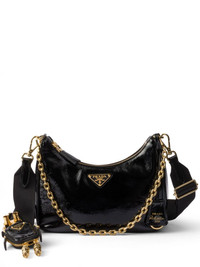 Re-Edition shoulder bag Highlights - Black - Leather - Top zip fastening - Patent finish - Single chain-link top handle - Adjustable detachable shoulder strap - Detachable coin purse - Enamel triangle logo - Main compartment - Internal logo plaque - Logo-print lining Composition Outer: Patent Leather 100%