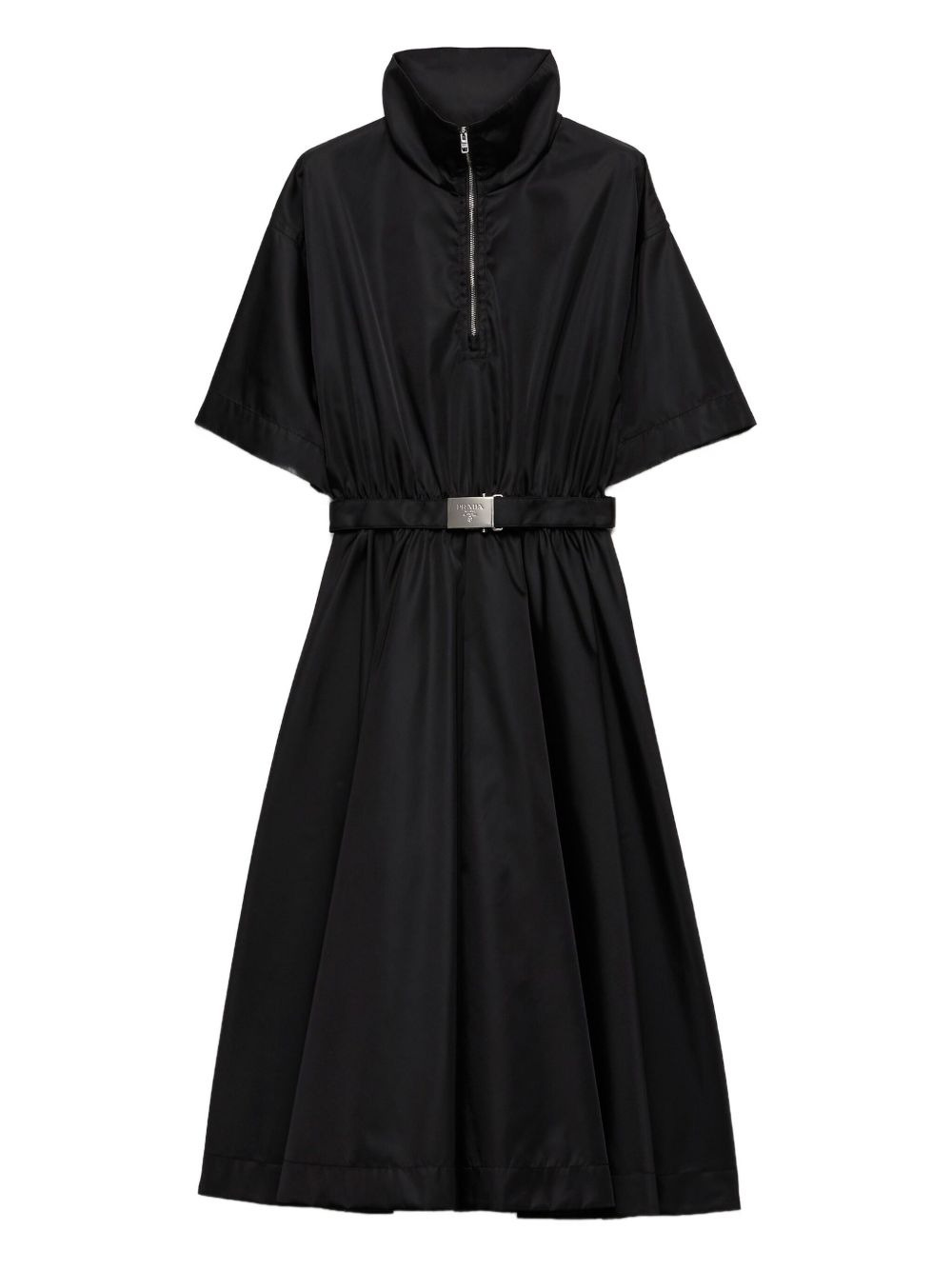 Re-Nylon belted midi dress Highlights - Black - Stand-up zip collar - Fabric belt - Plaque buckle - Short sleeves - Circle skirt Composition Recycled Nylon 100% Washing instructions Read Manufacturer Guidelines