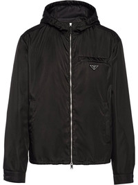 Re-Nylon hooded blouson jacket Black recycled nylon Re-Nylon blouson jacket from PRADA. Highlights - Black recycled nylon re-nylon blouson jacket from prada featuring classic hood, front zip fastening pockets, front zip fastening, enamel triangle logo and long sleeves. . Composition Nylon 100% SIZE & FIT Measurement CHEST 44.88 in(114 cm) SLEEVE LENGTH 25.19 in(64 cm) LENGTH 25.98 in(66 cm) WAIST 44.09 in(112 cm)