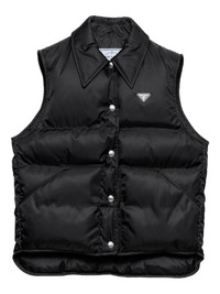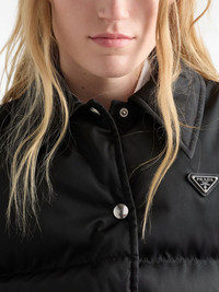 Re-Nylon down vest Highlights - Shirt-style collar - Padded design - Enamel triangle logo - Regular fit - Snap closure - Pouch pockets - Lined garment - The model is 180 cm tall and wears a size 38 Composition Lining: Down 100% Outer: Recycled Nylon 100% SIZE & FIT Measurement BUST 31.65 in(80.4 cm) HIPS 33.85 in(86 cm) WAIST 23.22 in(59 cm) Washing instructions Read Manufacturer Guidelines